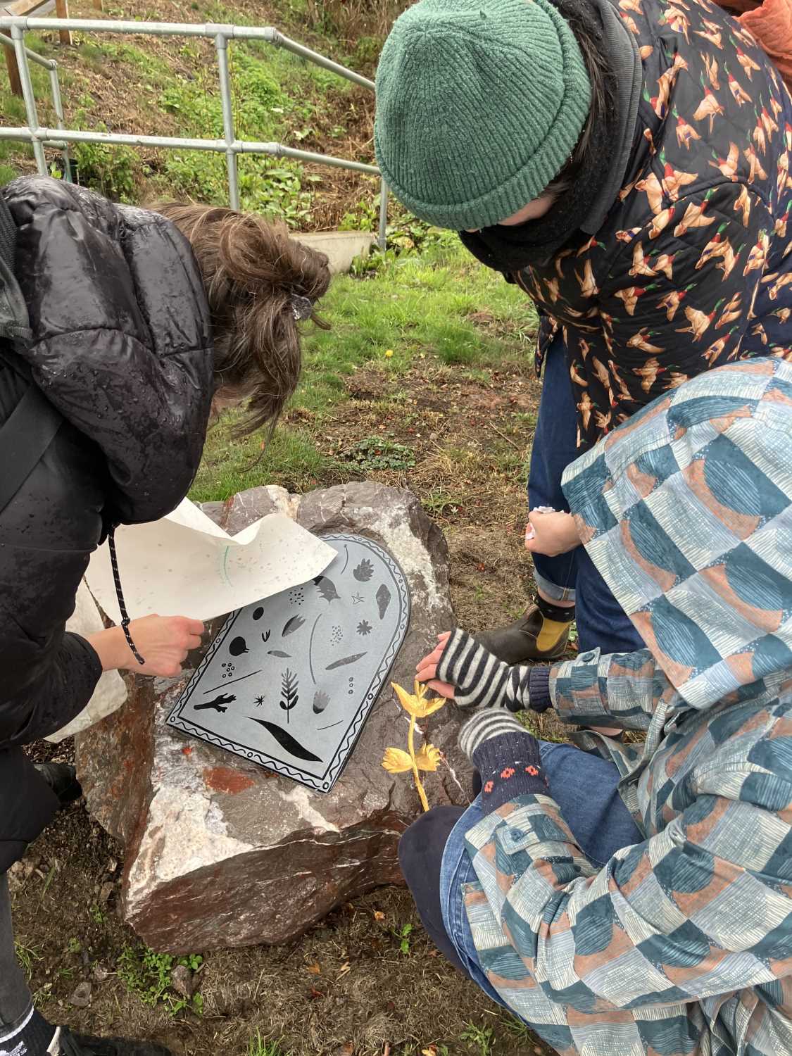The artworks take the form of stone carvings which are designed for “stone rubbing” - the action of placing a sheet of paper over the stone and using a pencil or crayon to copy the design. The illustrations on each stone are intended as puzzles, games or decorations where once copied can be used as the starting point for further creative play or experimentation.